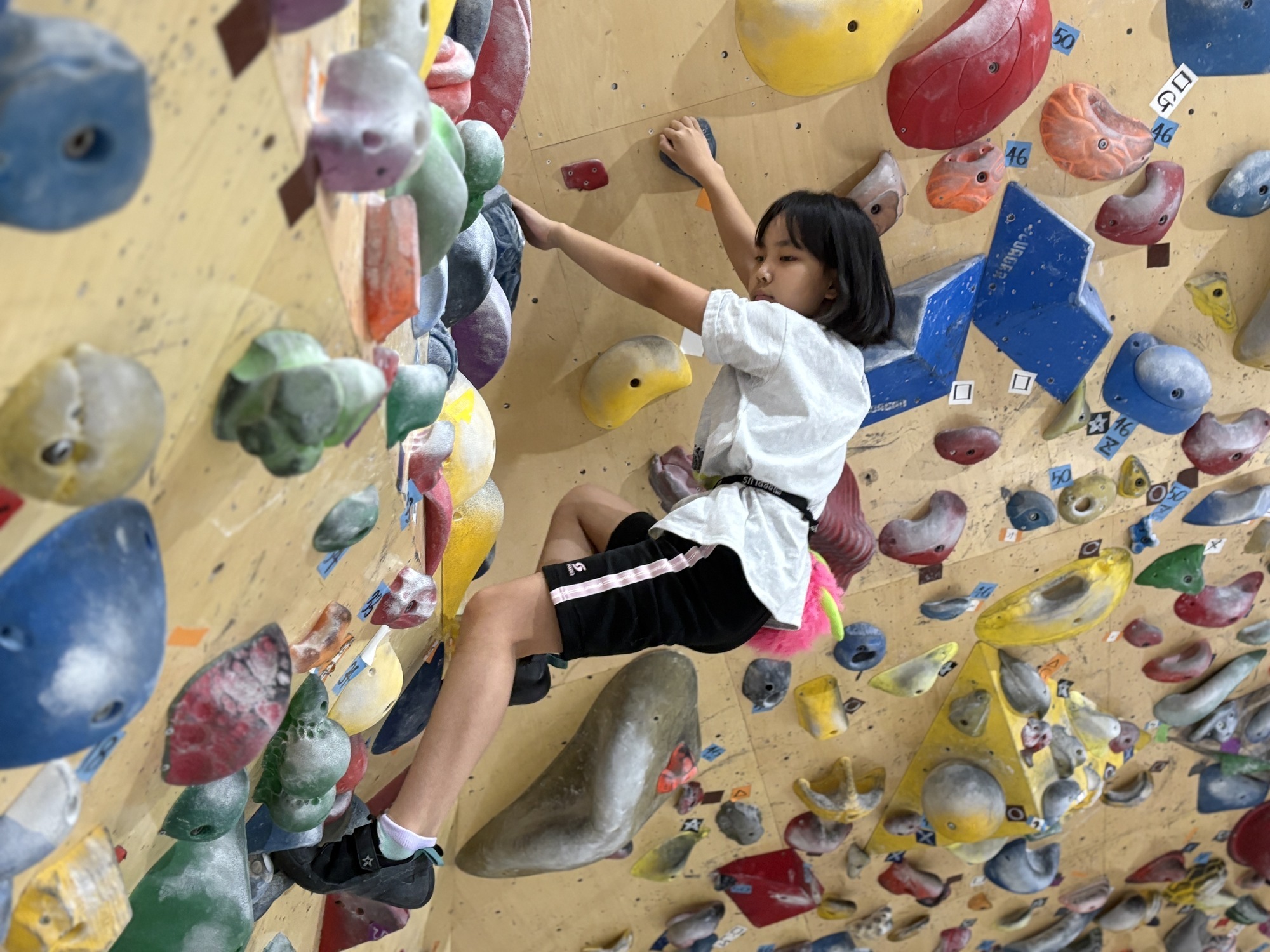 スクール内でのイベントで、子どもたちが時間内に指定された課題を登り、いま自分がどれくらいのグレードを登れるのかを明確化します。