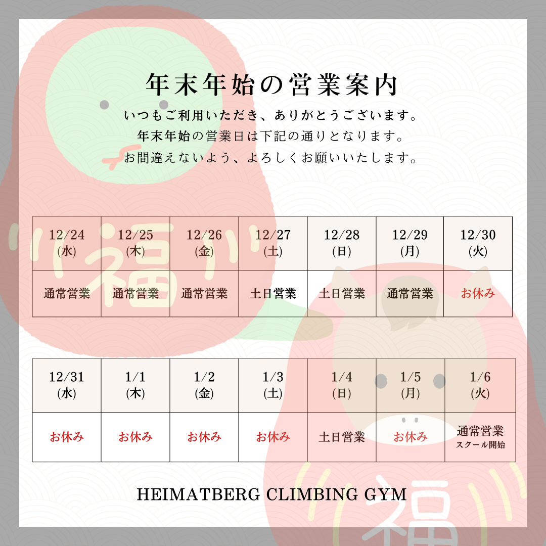 また、クライミングだけではなく、アウトドア初心者の方に向けた、楽しく安全に参加して頂けるフィールドイベントやスクールも企画しております。 これからアウトドアを始めようとしている方も来店して頂けるよう、スタッフ一同楽しみにお待ちしております。