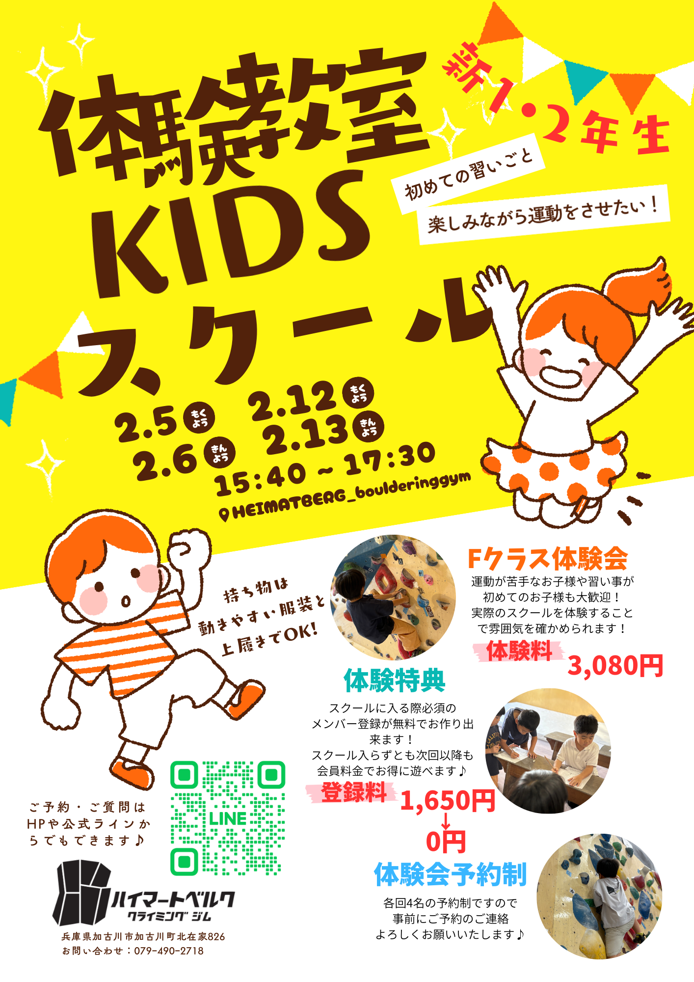 初めての子から経験者の子まで、自分にあった楽しみ方や登り方をスポーツクライミングのコーチング資格を持ったスタッフが、指導し一緒に楽しみながら子供たちの自立した成長を目的と自ら『頑張る』子供たちになれる様、指導しております。